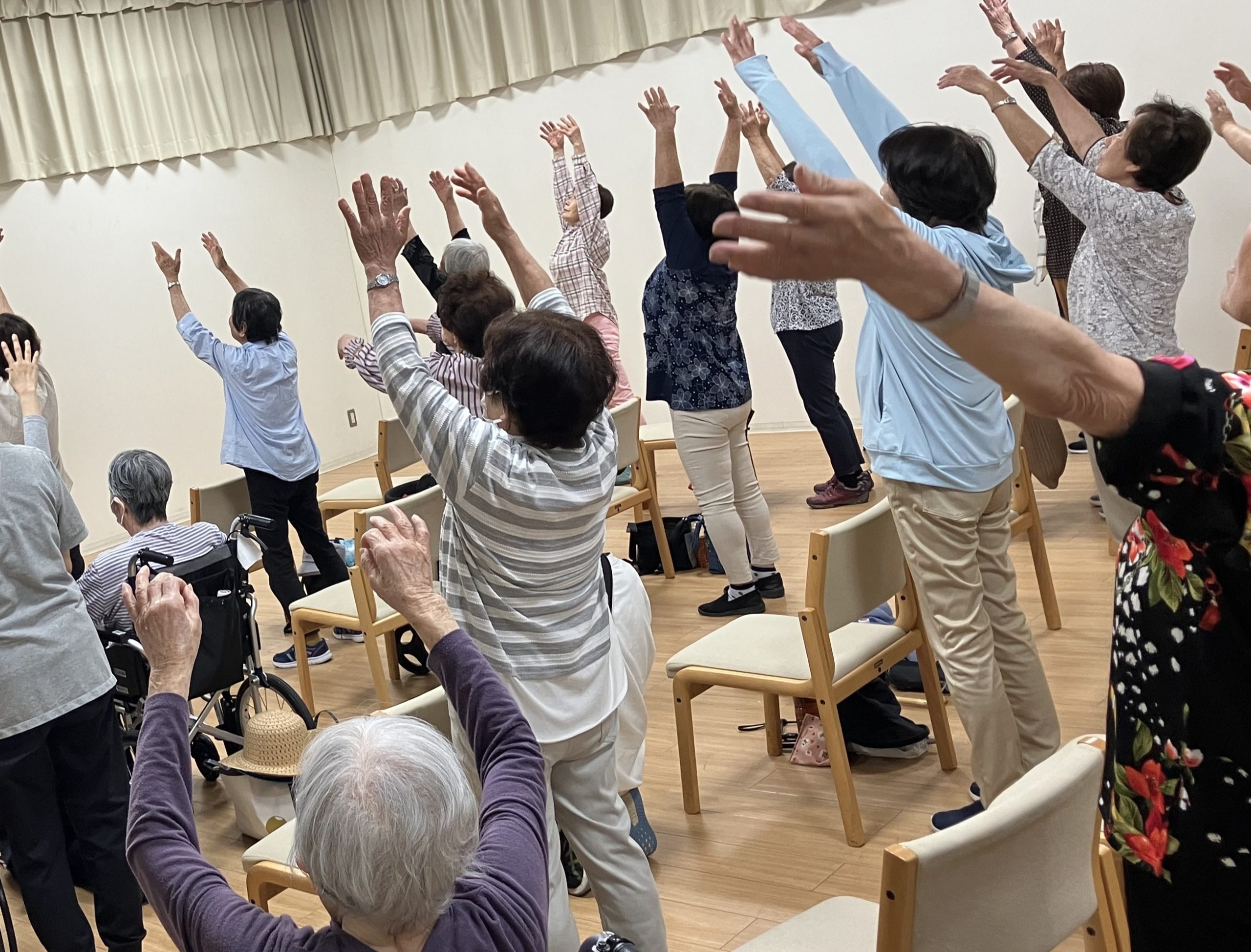 刈谷市の高齢者健康増進事業『いつでもつながる体操教室 刈谷』にて講師を勤める理学療法士のチャンミカ氏(所属:おんじぃのへや)に依頼し、刈谷富士松地域包括支援センター主催で『健康体操教室』を開催しました。刈谷市を代表する観光スポットである刈谷ハイウェイオアシスのセントラルプラザGF2階多目的ホールにて開催し、25名の高齢者の方が参加してくださり、約1時間音楽に合わせて楽しく身体を動かしました。